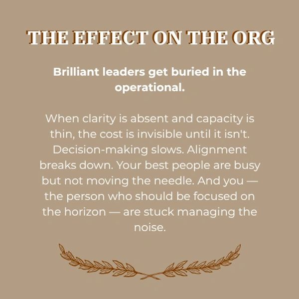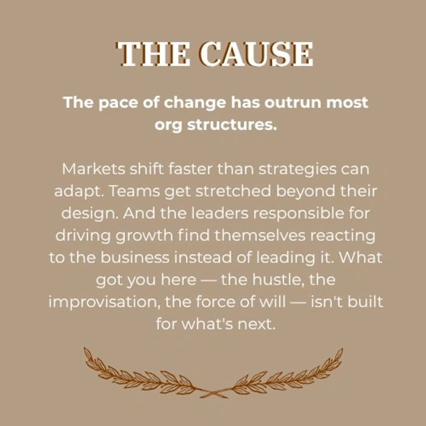 When the pace of change outpaces your structure, even the best leaders get buried in the operational. Decisions slow. Teams lose alignment. The leaders you've promoted are carrying weight they were never fully equipped for. And the gap between where you are and where you're built to go keeps widening — not from lack of effort, but from lack of clarity.